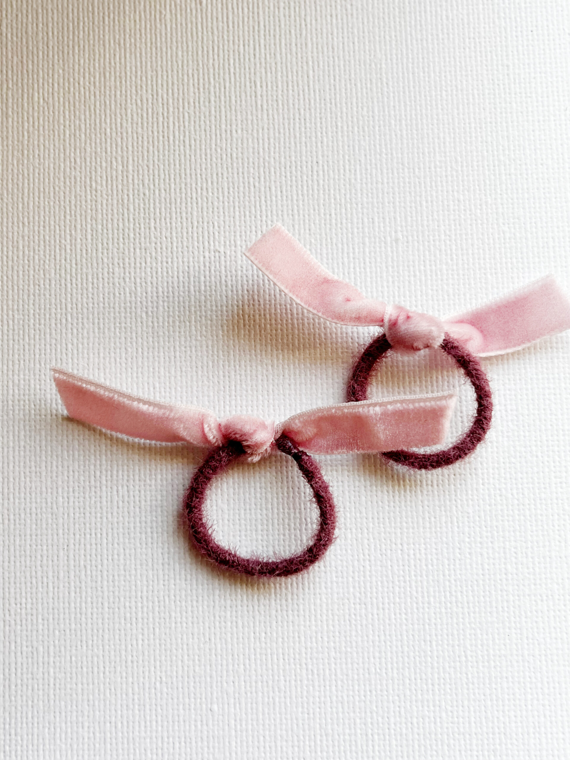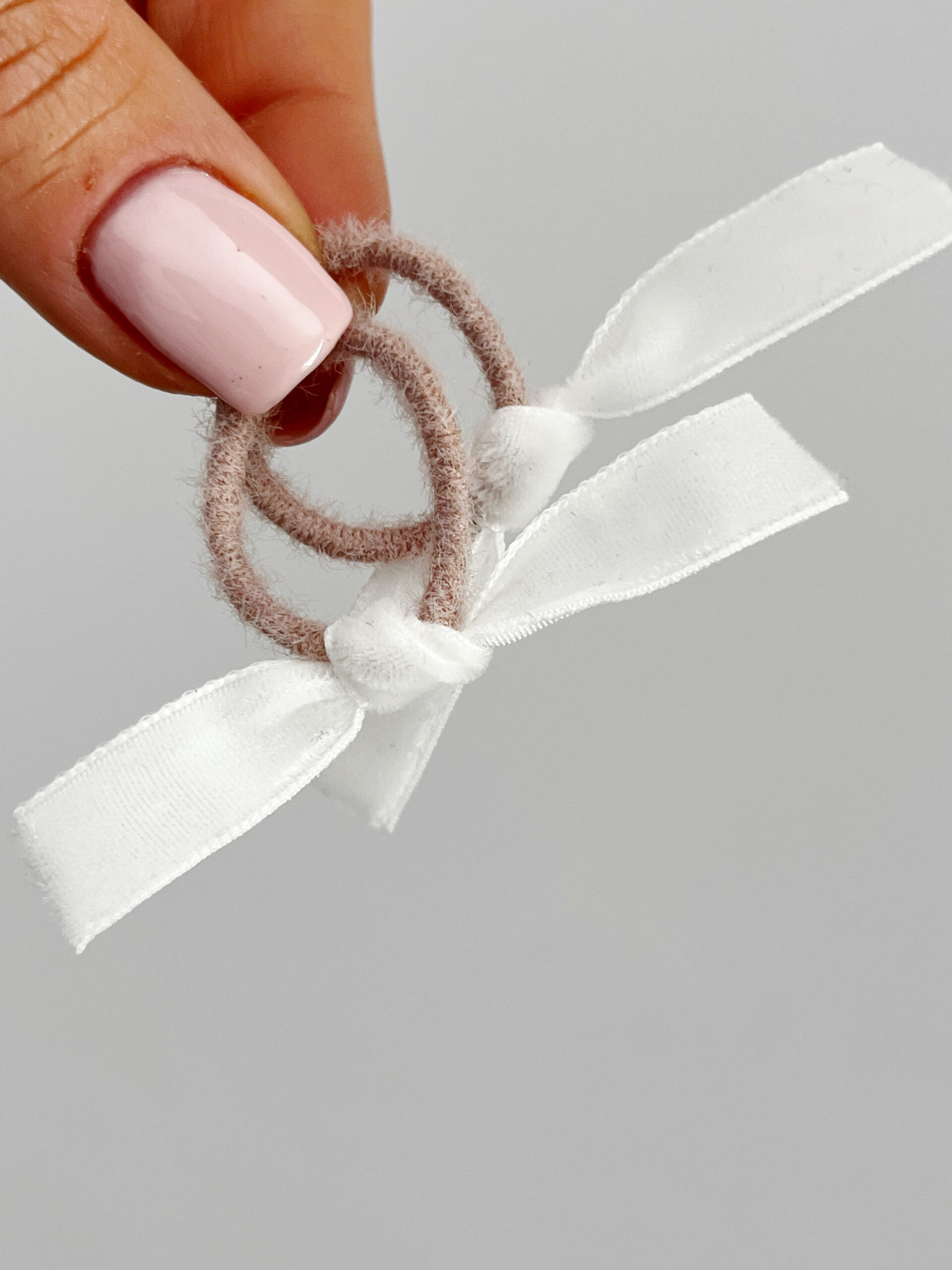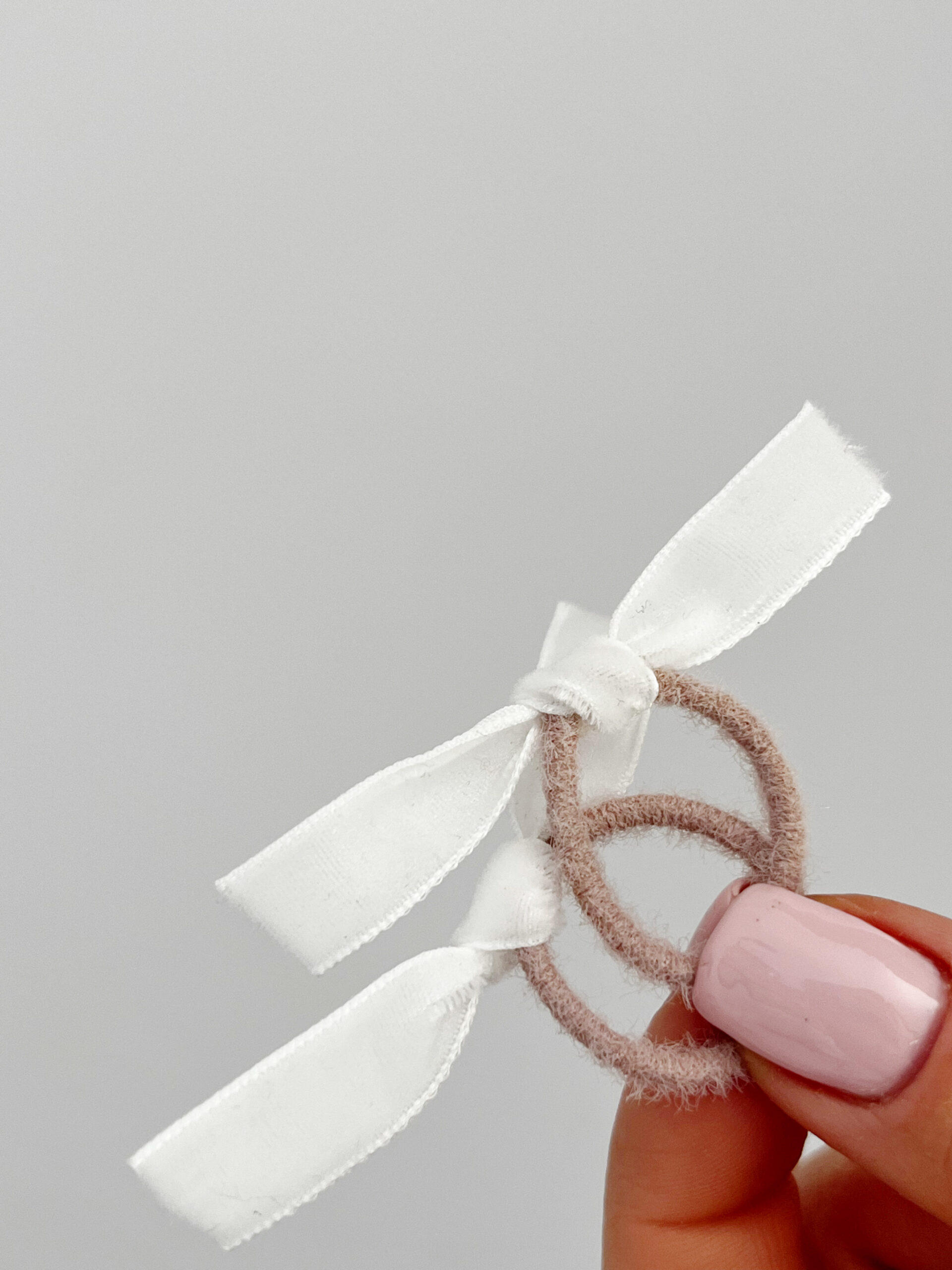 Aksamitna kokardka do wyboru w dwóch kolorach – różowym lub białym