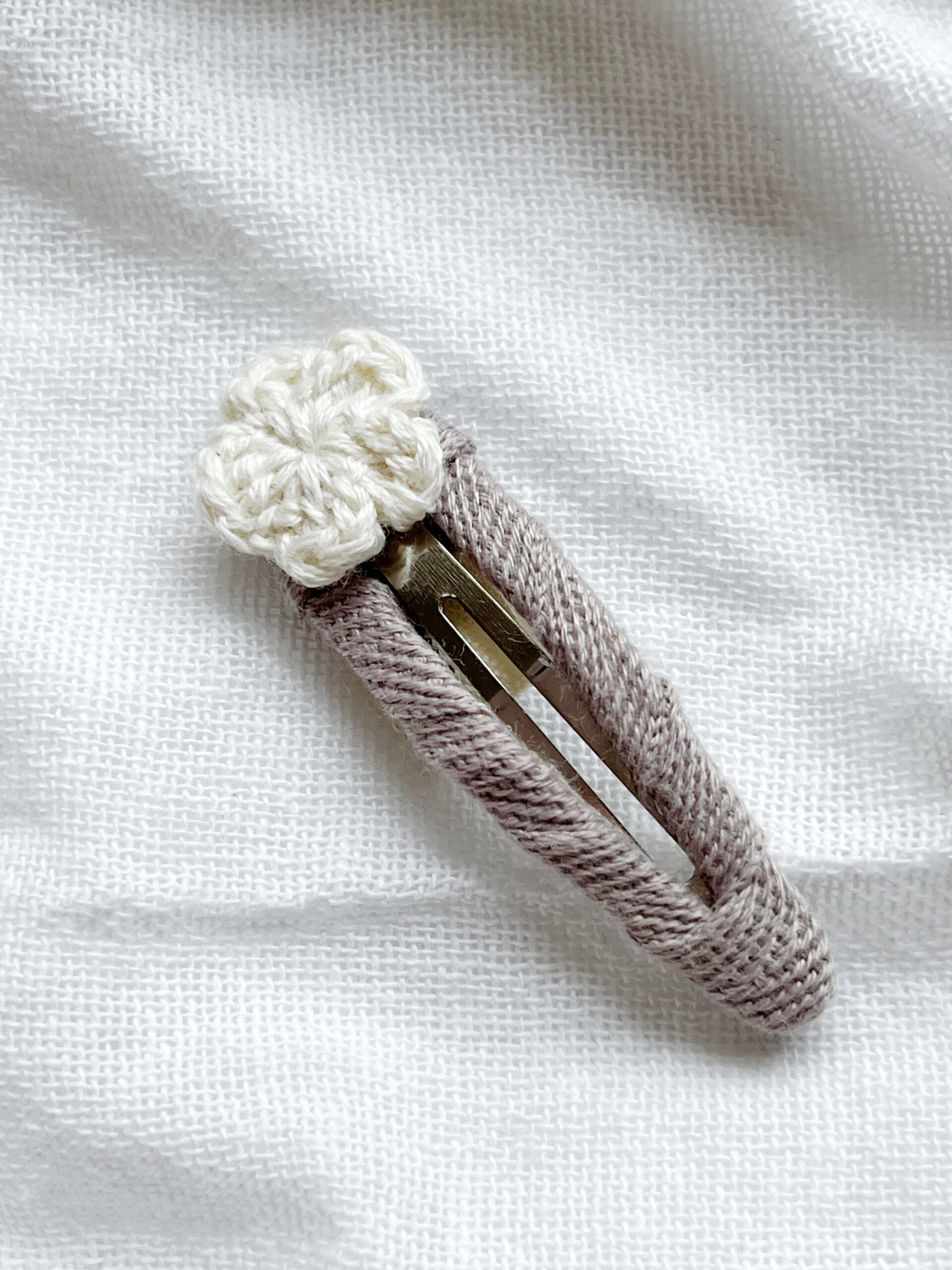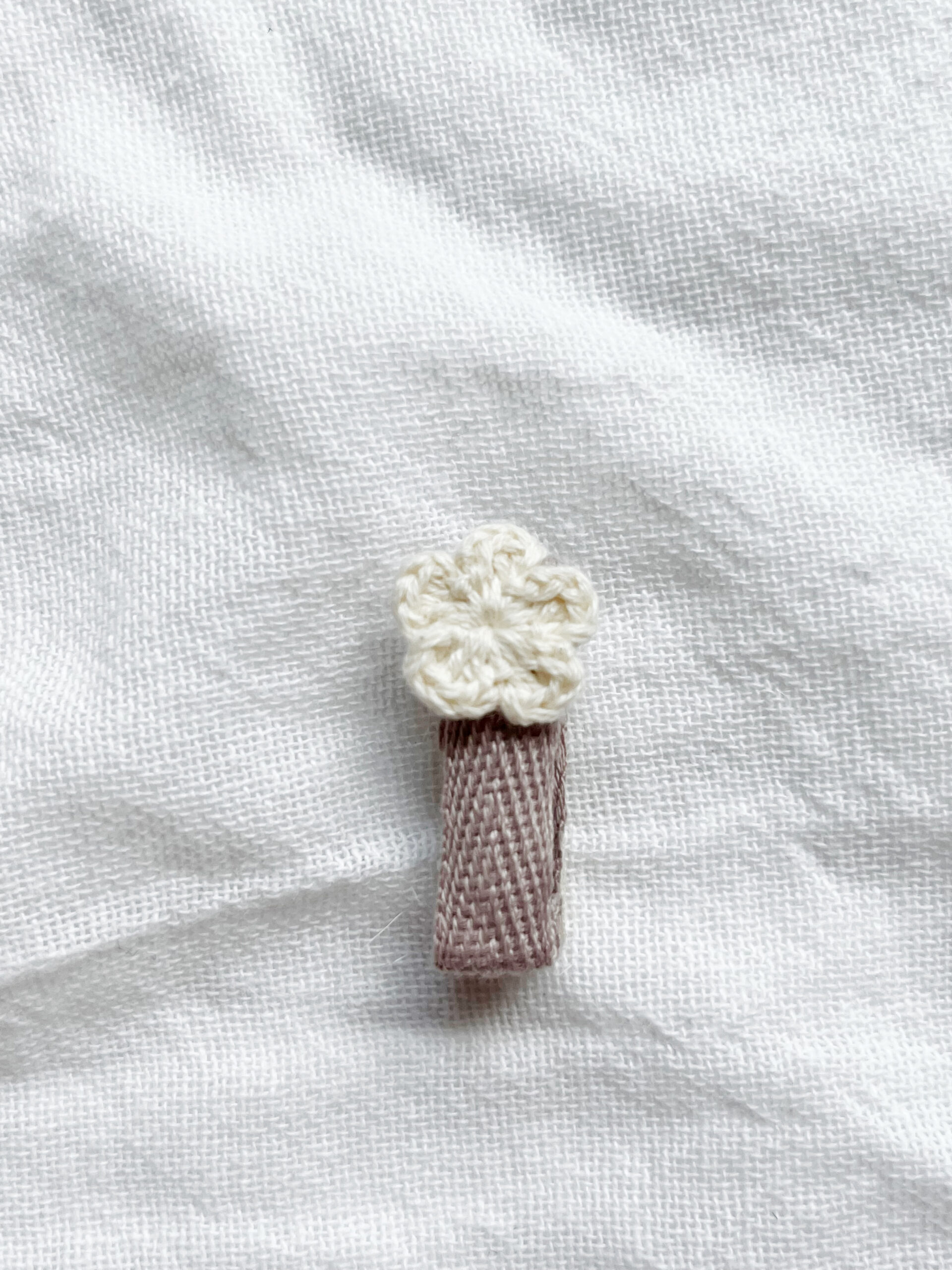 Spineczka z mini szydełkowym kwiatuszkiem