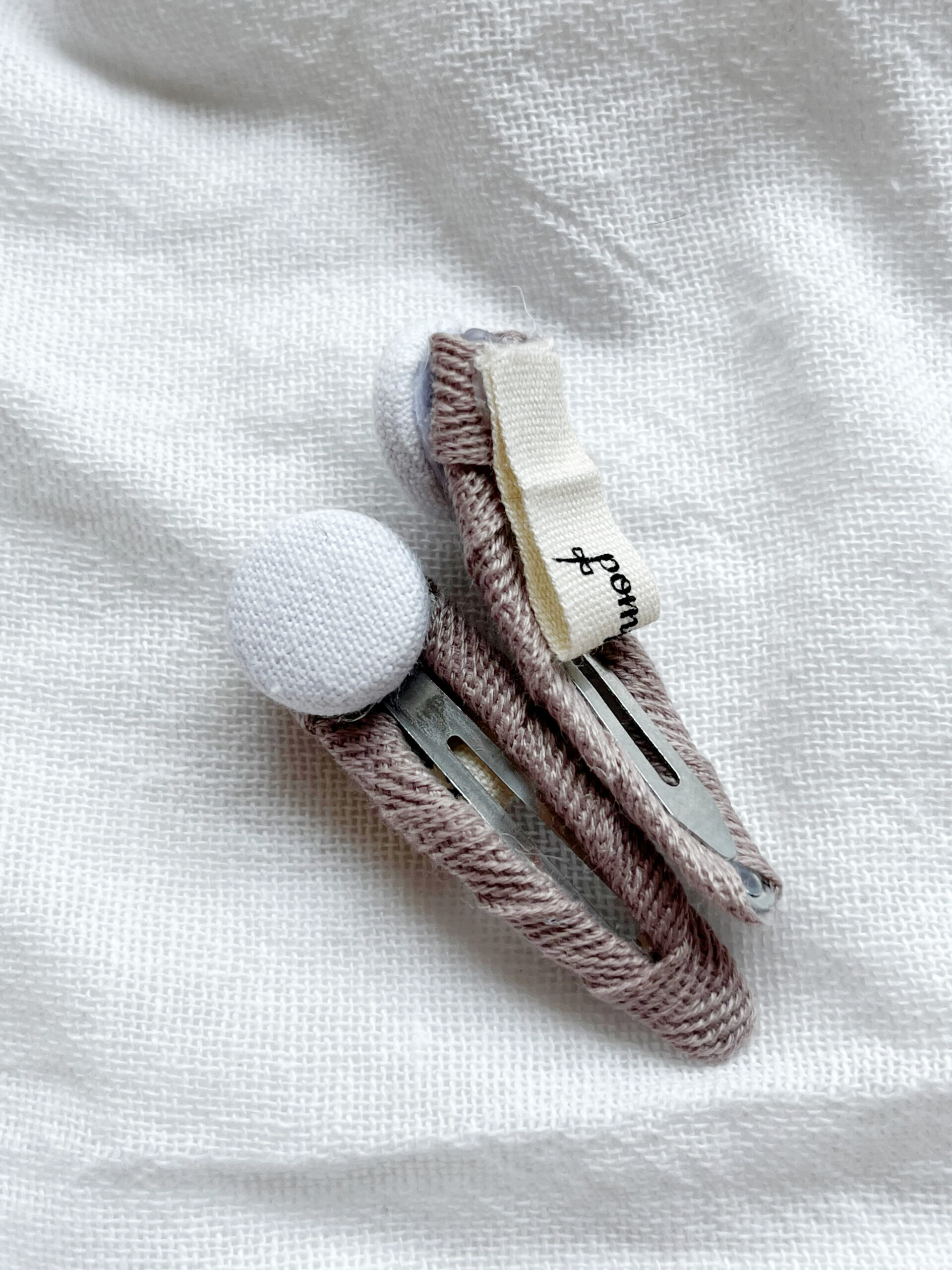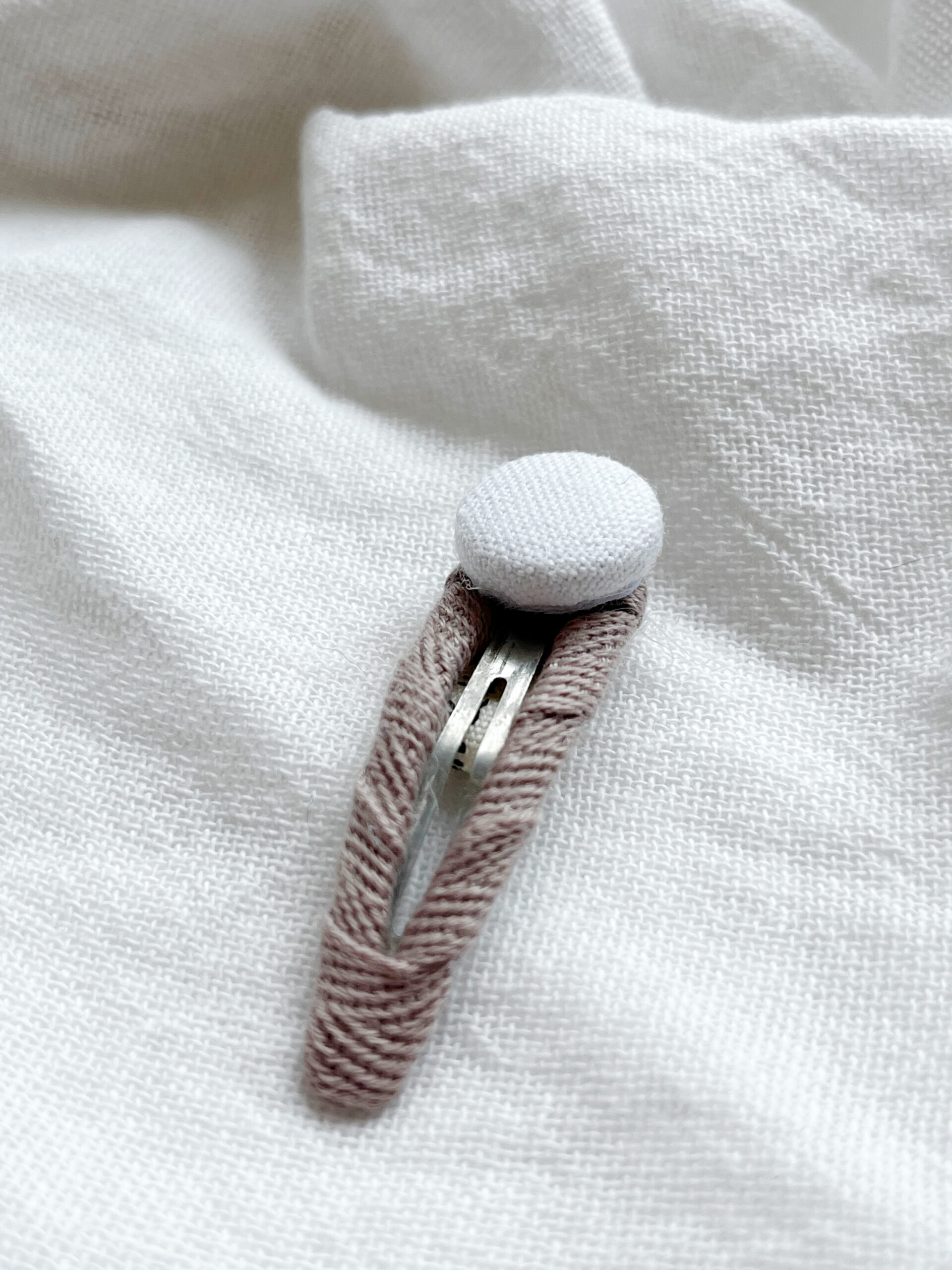 Klips na klik z bawełnianym guzikiem w kolorze śnieżnej bieli
