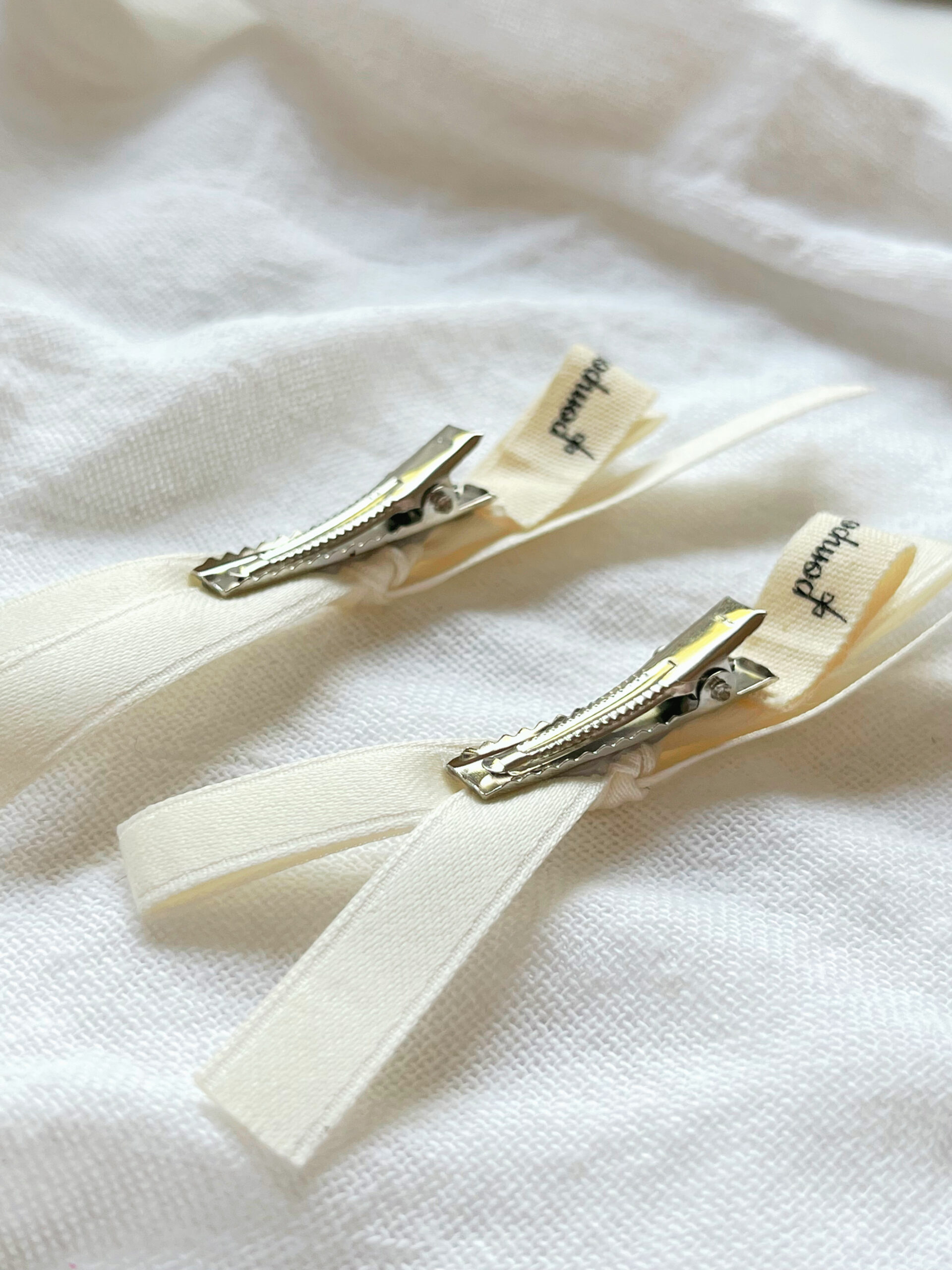 Zestaw dwóch prostych kokardek w kolorze delikatnej śmietanki