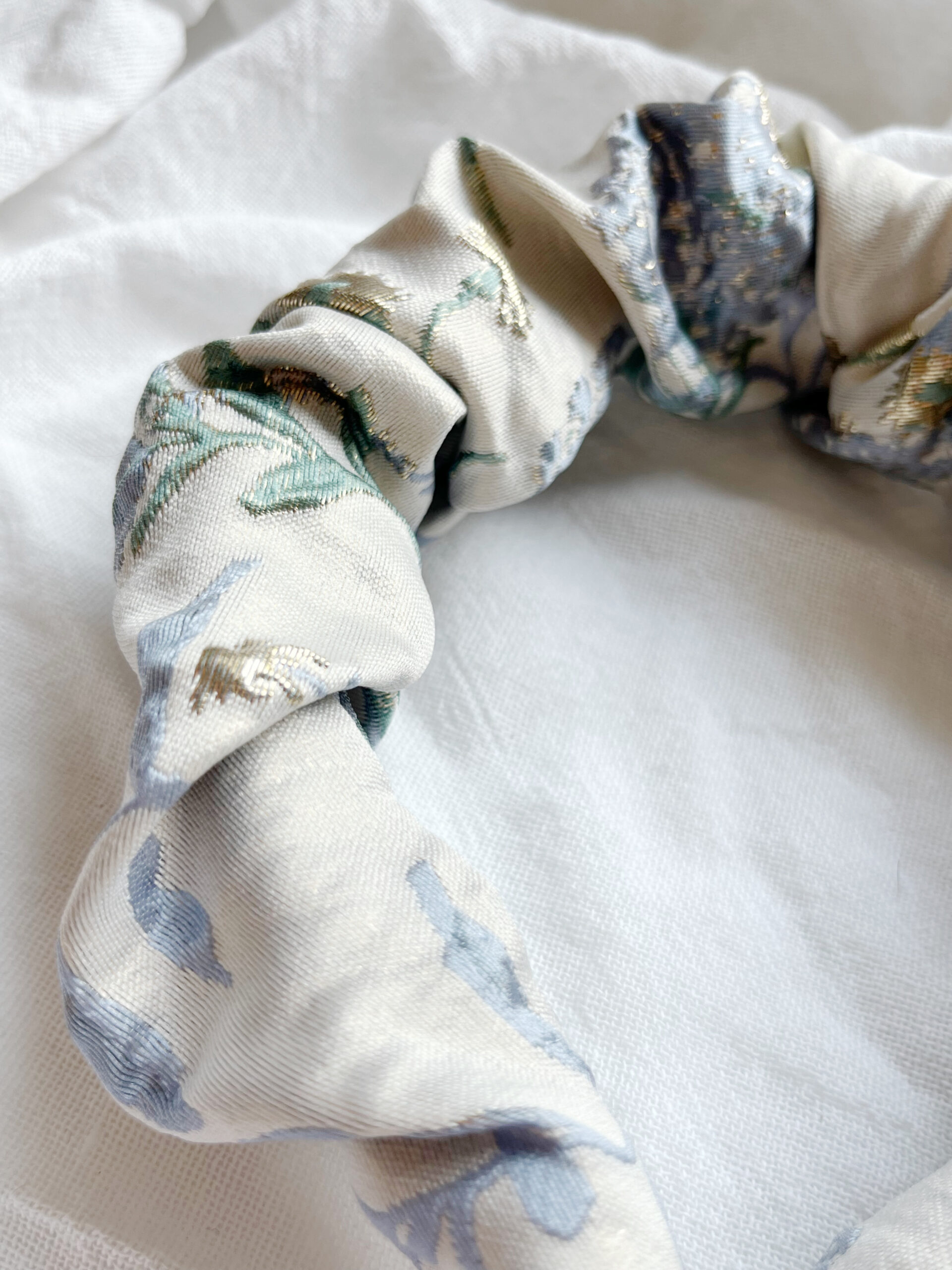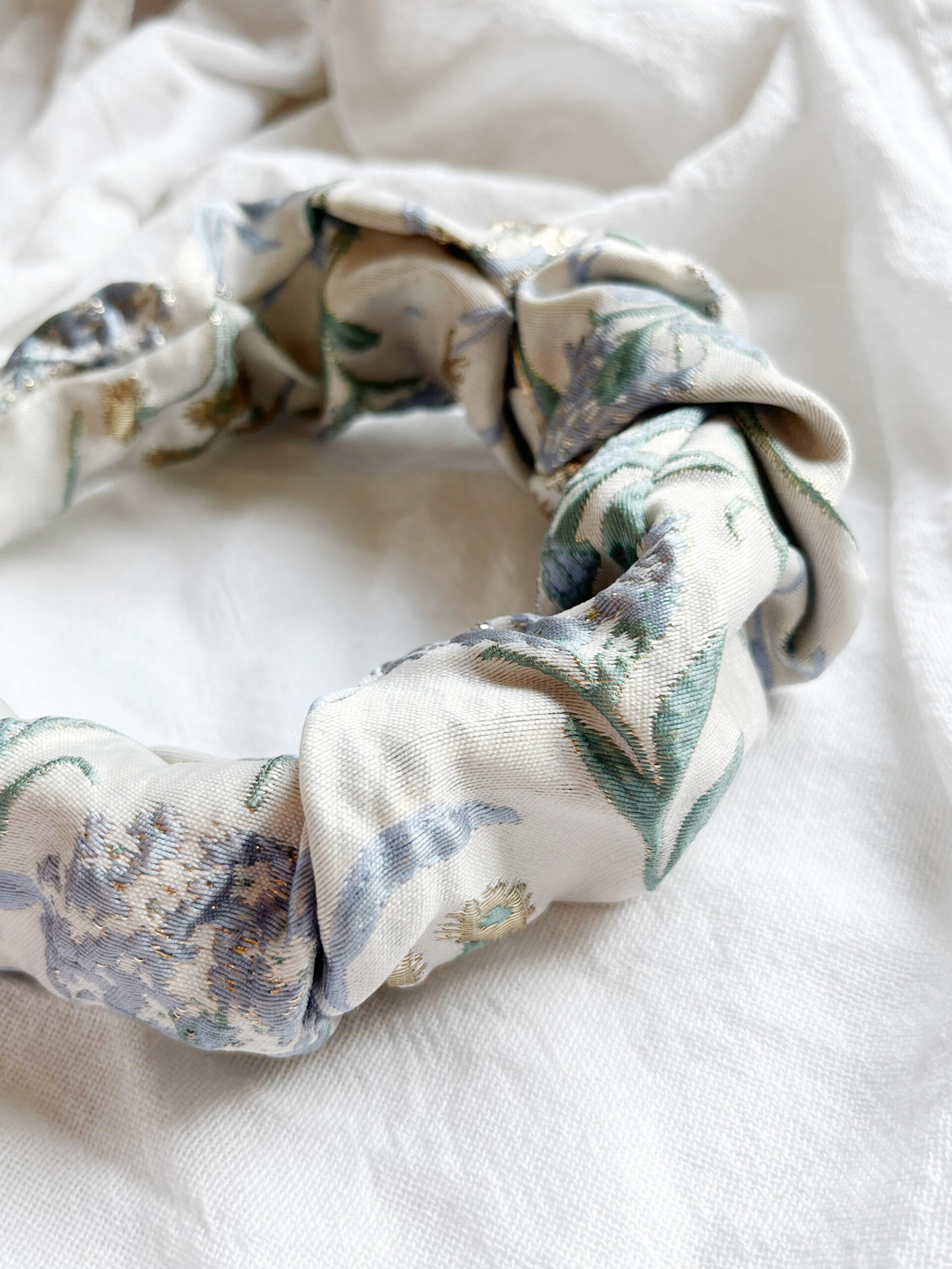 Piękna, stylowa opaska scrunchie wykonana z wysokiej jakości żakardu w kwiatowy wzór